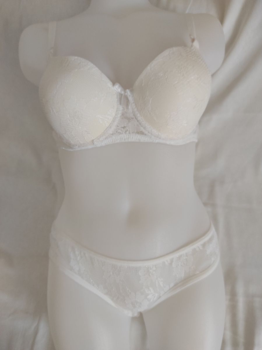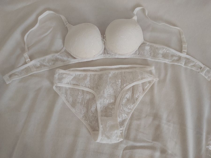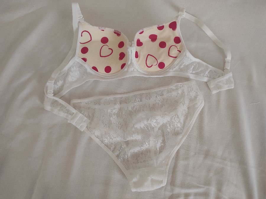 Beyaz Dantelli İçi Kalp Desenli Sütyen Takımı