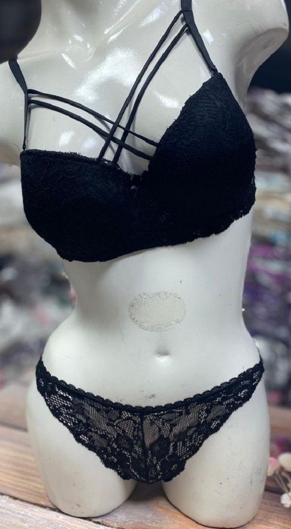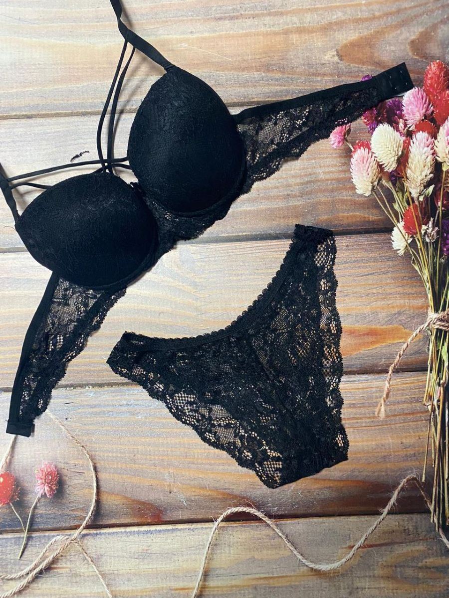 Dantelli Önden Çapraz Askılı Sütyen Takımı Siyah