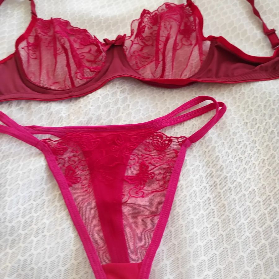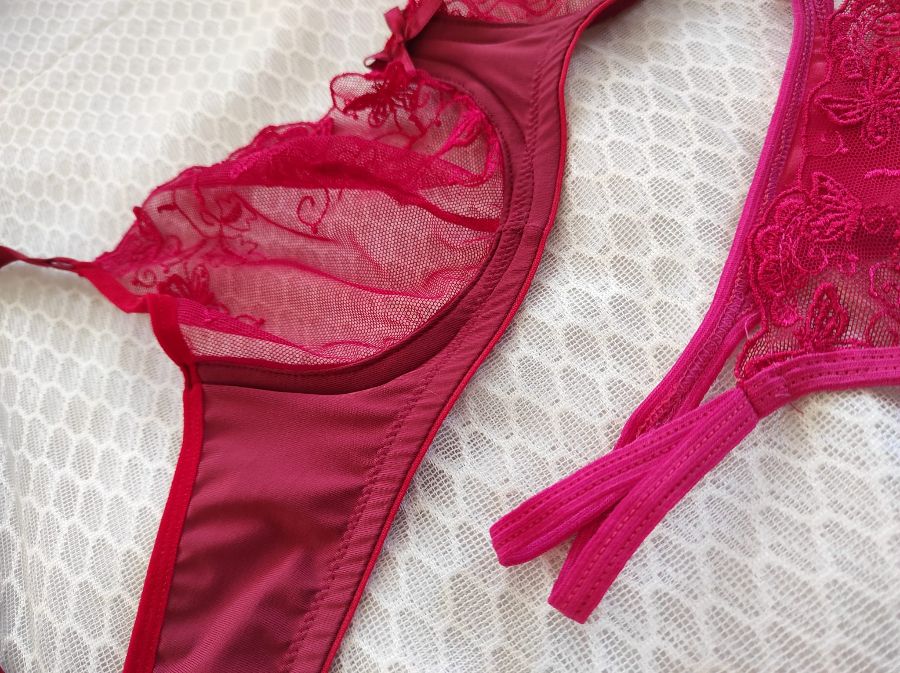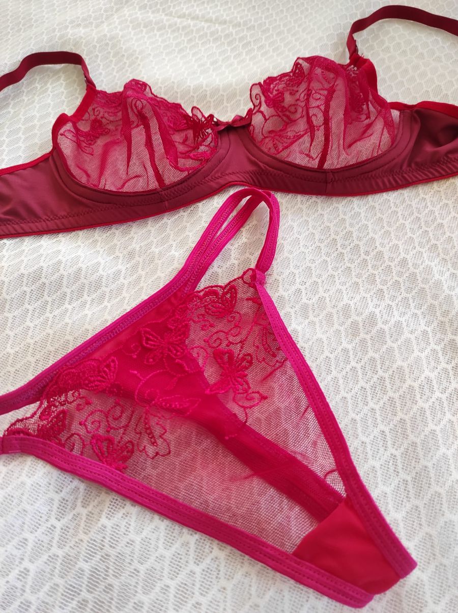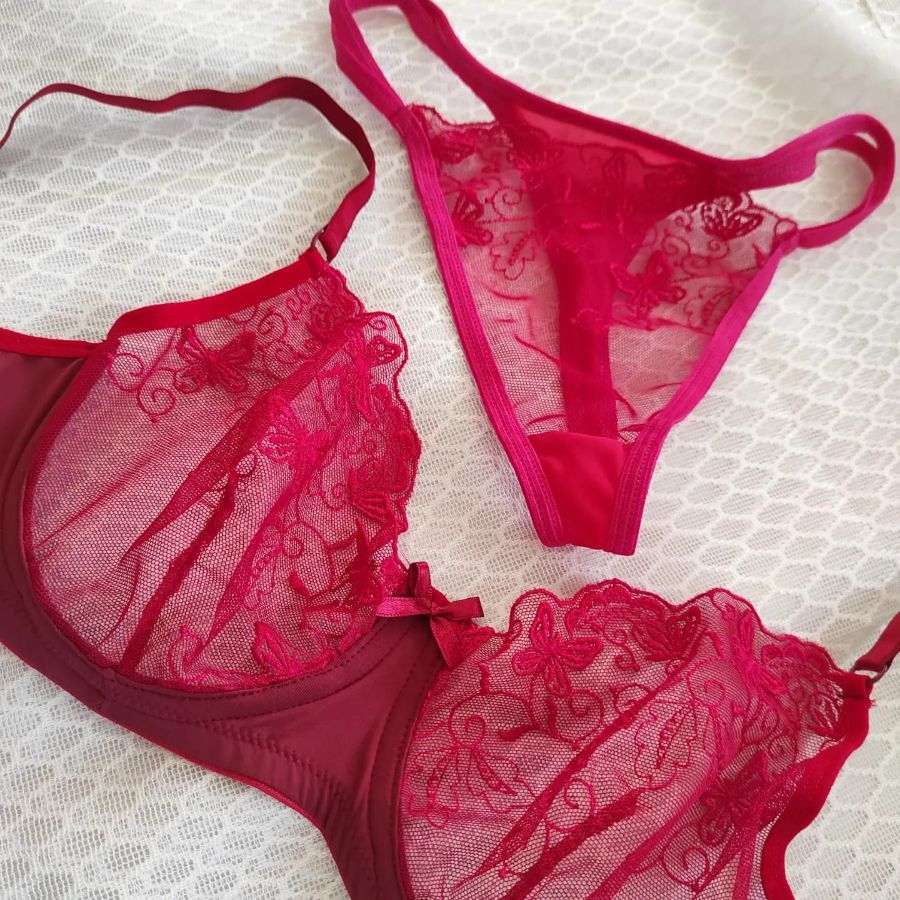 Kırmızı Dantelli Nakışlı Balenli Transparan Brode Bralet Sütyen Takım