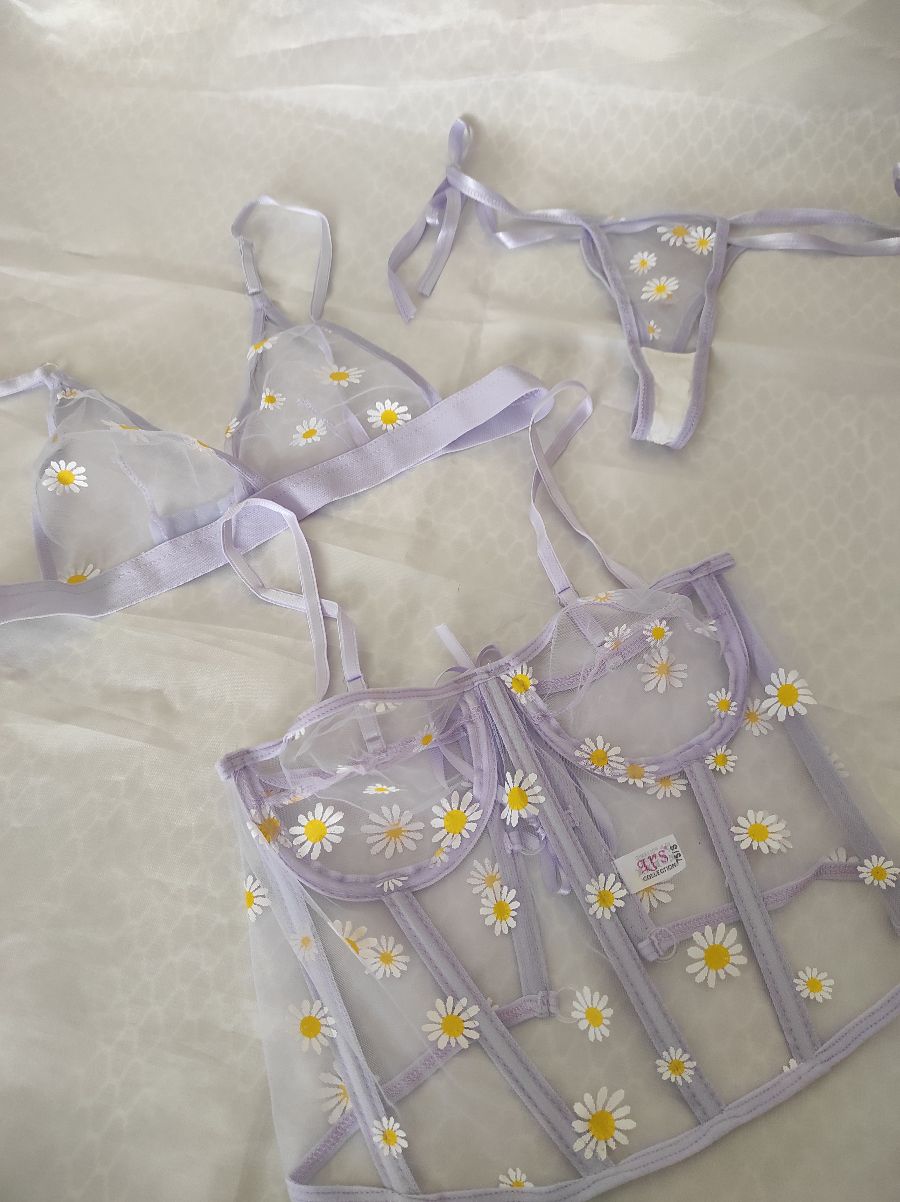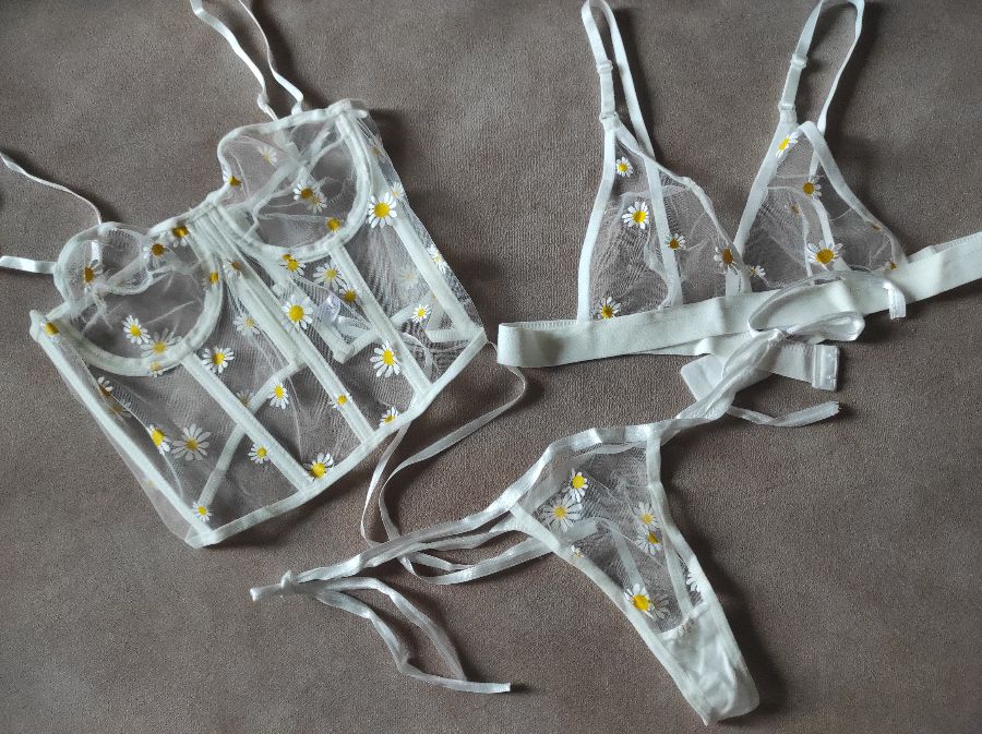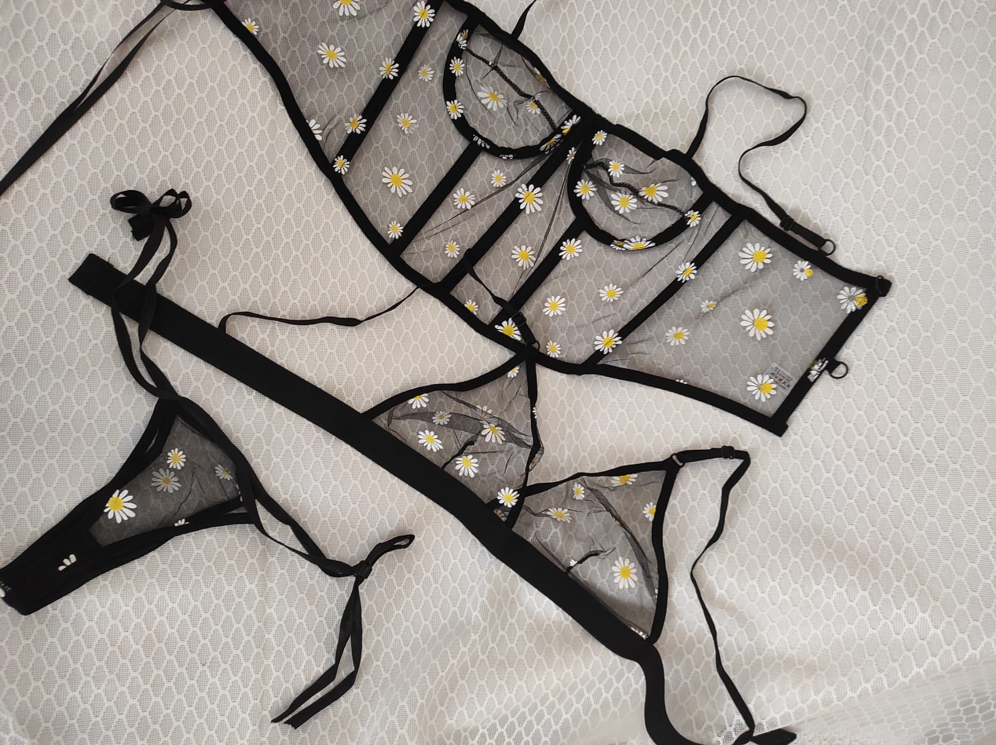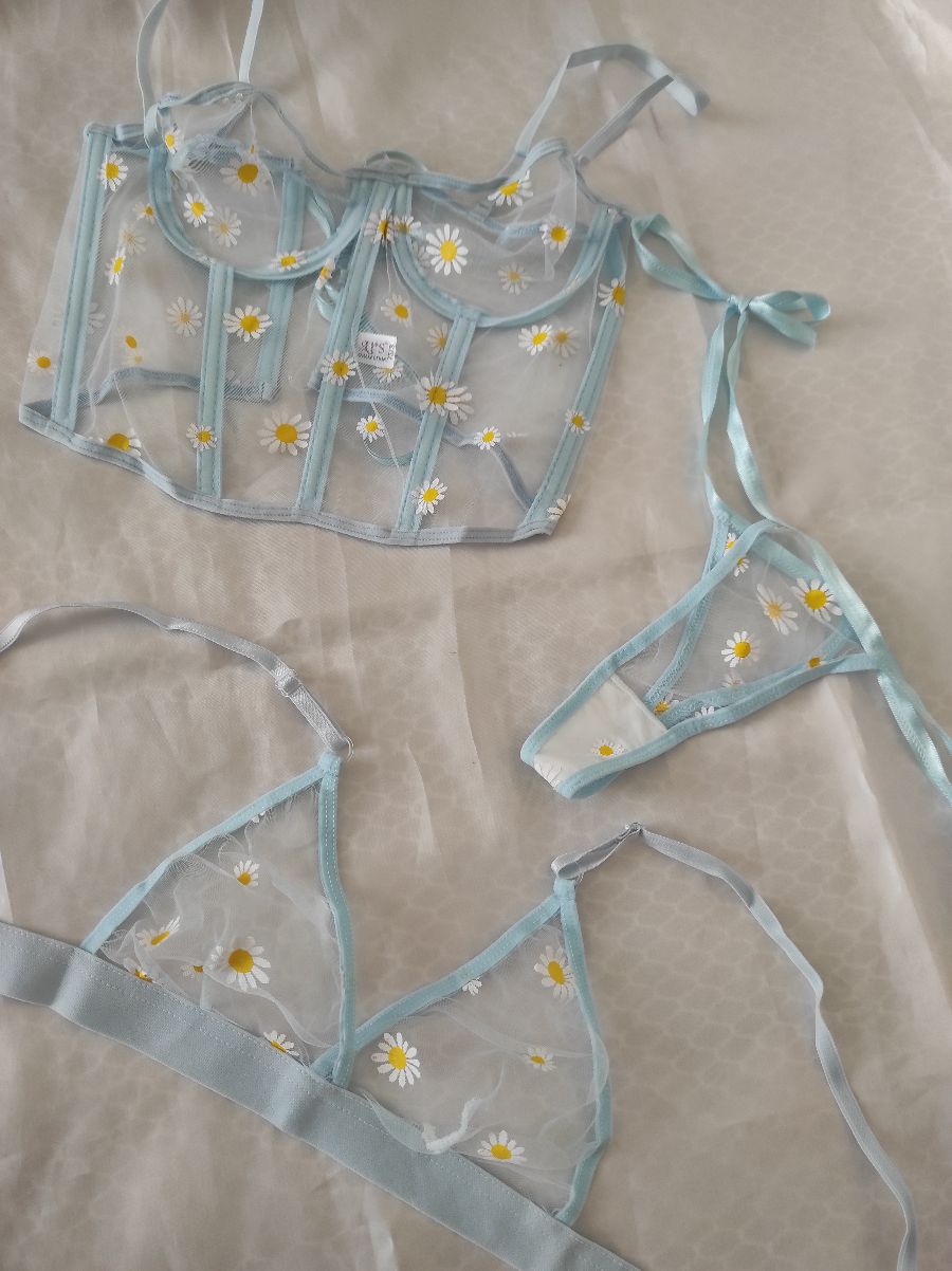 Papatyalı Transparan Büstiyer ve Sütyen Takımı